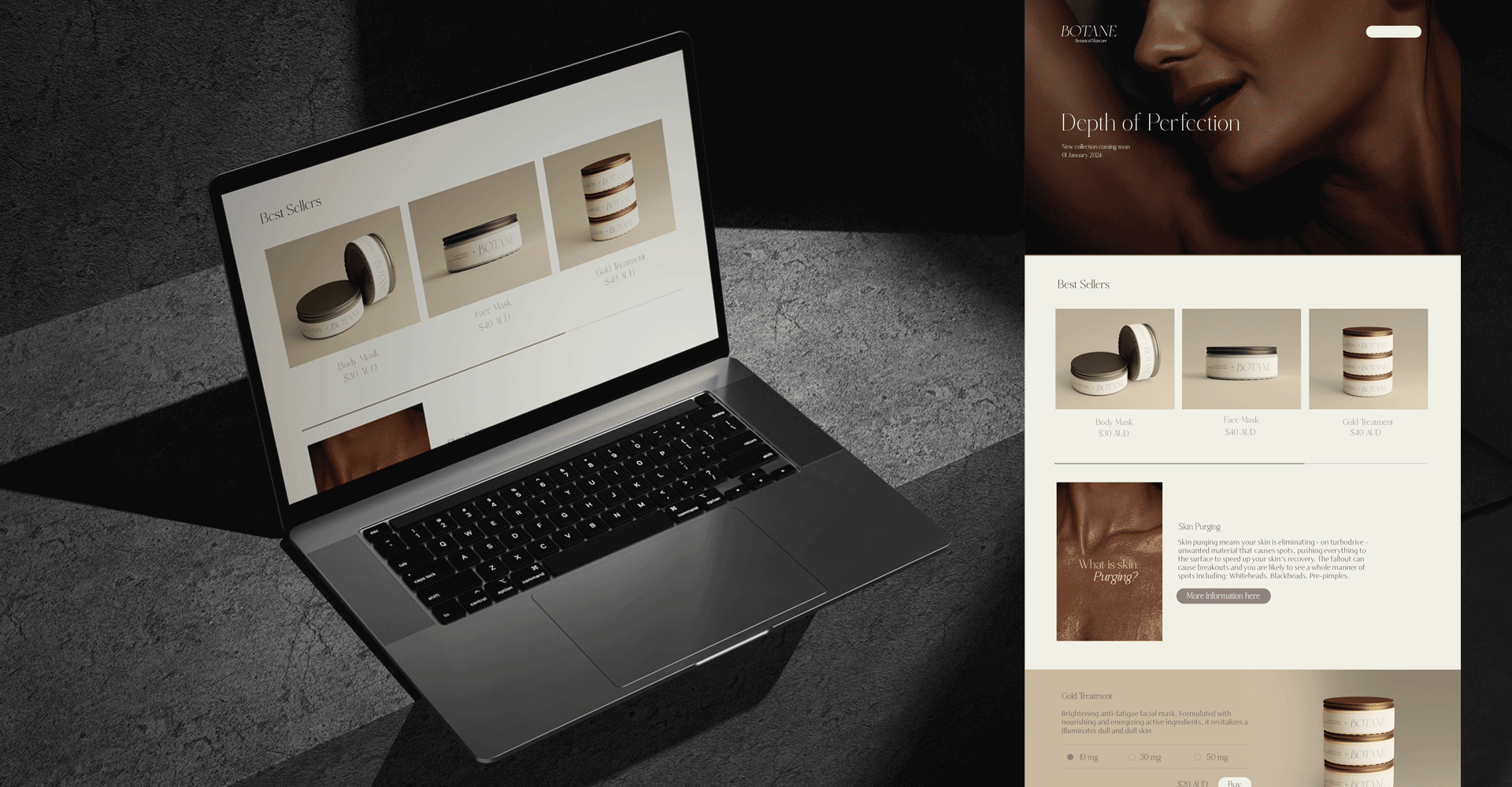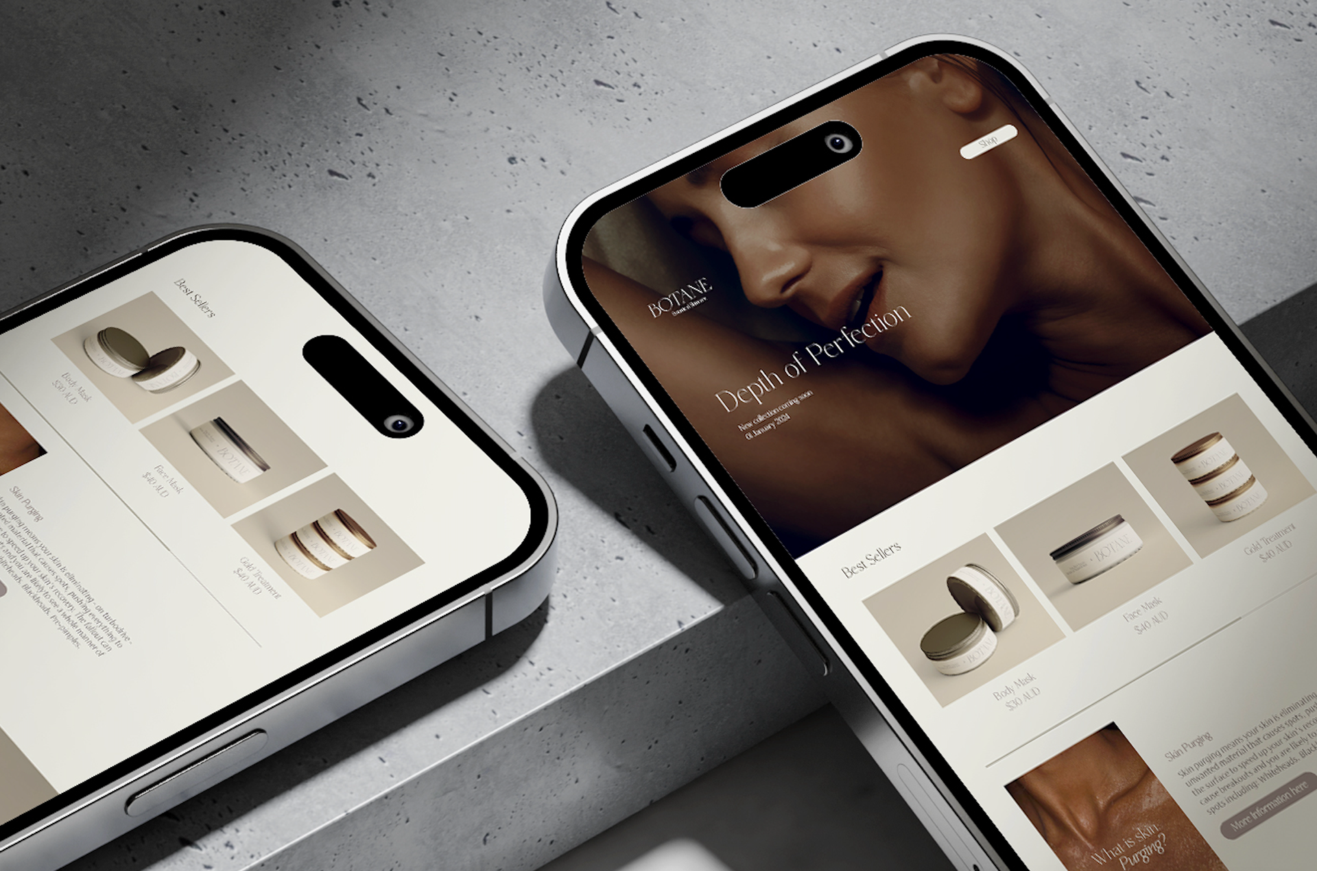 Botane Web Design is a brand-focused visual concept created to showcase the aesthetic identity of the Botane brand online. The design features an elegant, nature-inspired interface, blending clean layouts, botanical imagery and minimalist typography. Its serene palette, soft textures and intuitive visual hierarchy evoke calm sophistication, perfectly aligned with the brand's refined approach to beauty and design.