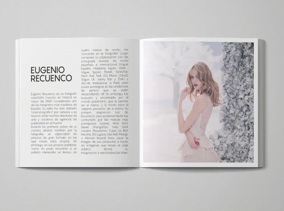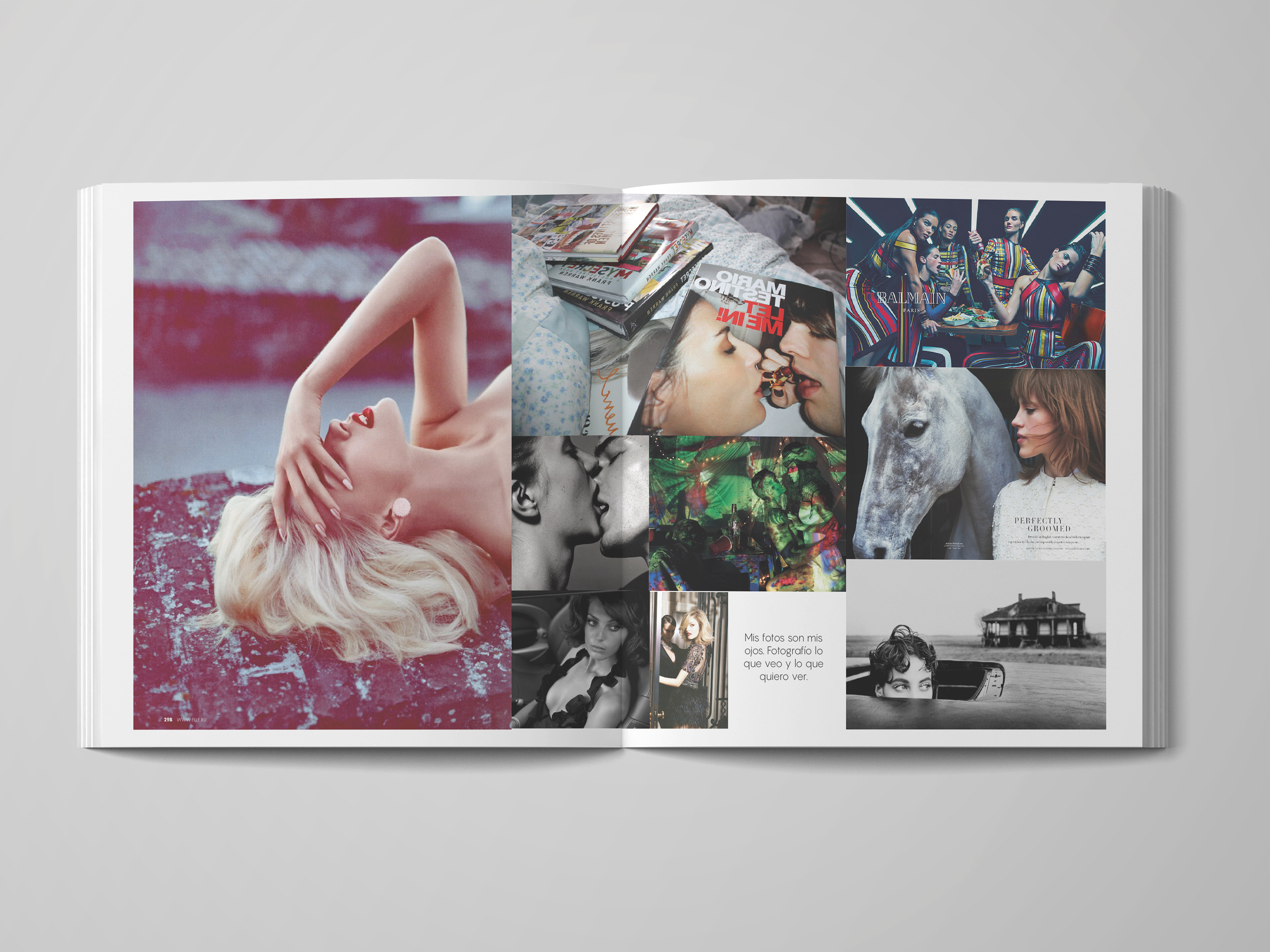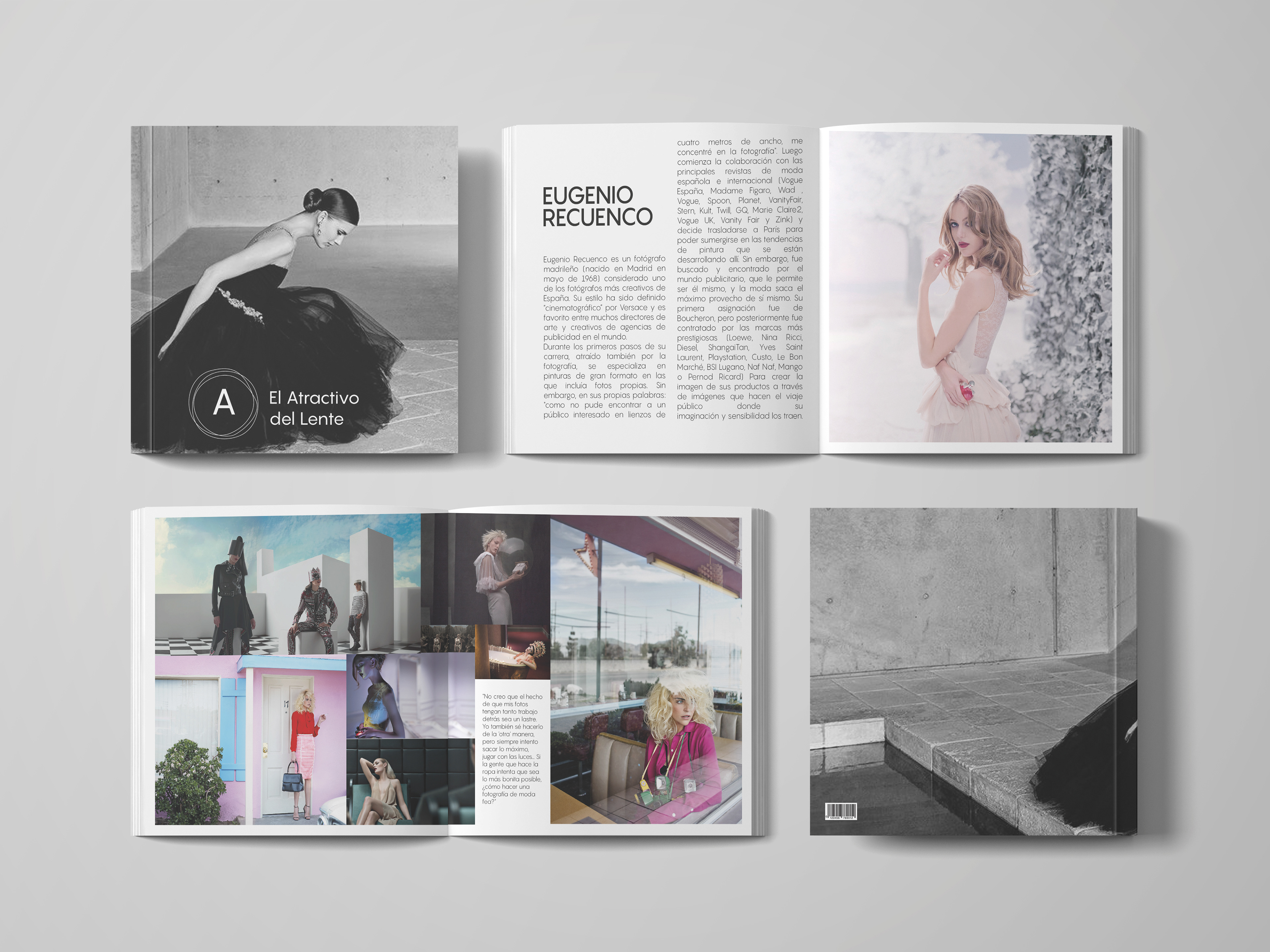 El Atractivo del Lente was a university editorial design project that explored my passion for editorial photography. This publication showcased influential photographers and their works that shaped my creative vision, combining thoughtful layouts, typography and image curation. The project demonstrated my ability to create cohesive editorial narratives through careful pacing, visual hierarchy and attention to print production details.